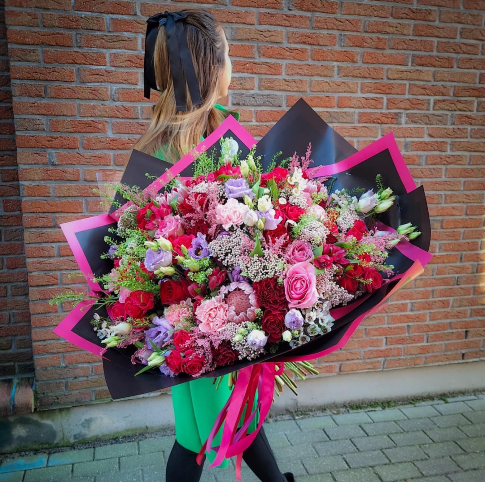 Puokštėje dera švelnios ir ryškios spalvos, kurios ne tik žavi akį, bet ir kuria šiltą ir elegantišką atmosferą. Tai gėlės, kurios kalba pačios už save – jos gali tapti puikia dovana tiek svarbiam jubiliejui, tiek romantikai, tiek šventei. XXL dydžio puokštė – tai pasirinkimas tiems, kurie siekia išskirtinumo ir nori dovaną praturtinti gėlių grožiu ir didžiuliu emociniu įspūdžiu.